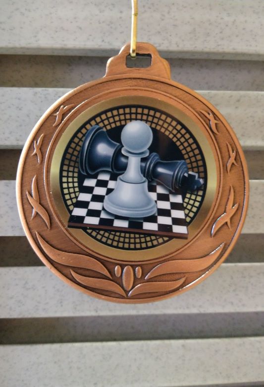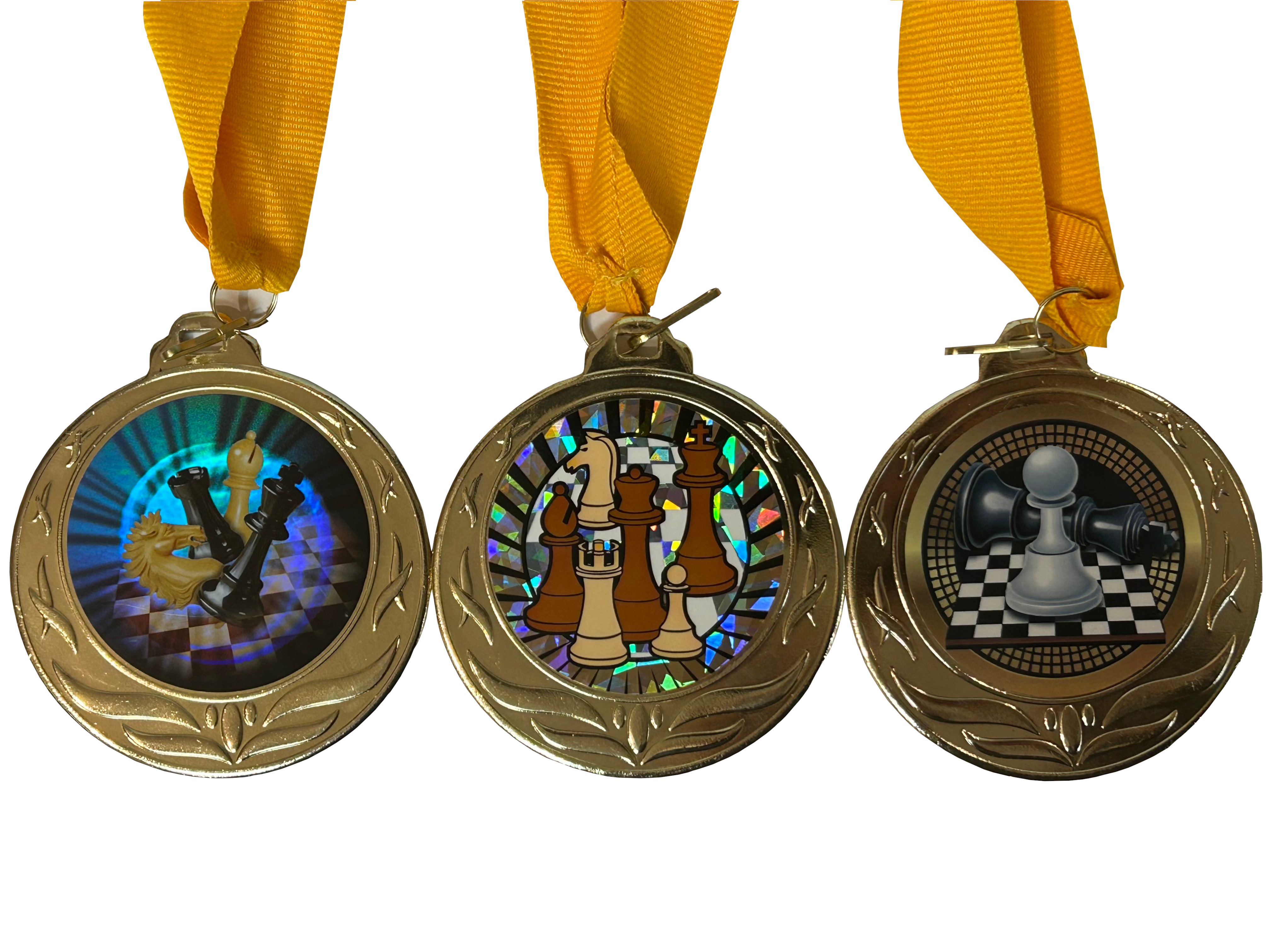 Chess Medal of 2.75" (7 cm) with a 2" (5 cm) Mylar.