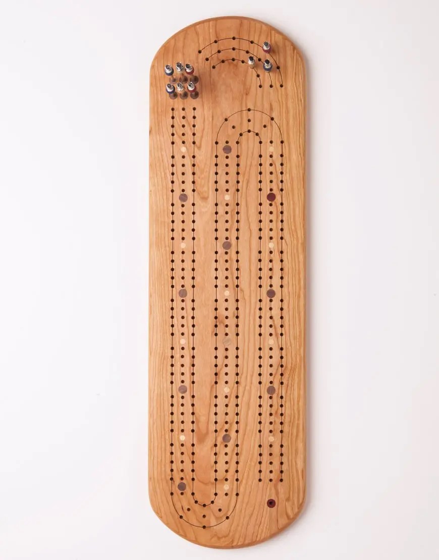 A larger version of the original Cribbage board conceived for two to six players. Fans love the large metal pegs. The most popular choice from our collection, this game makes a wonderful gift for any occasion.